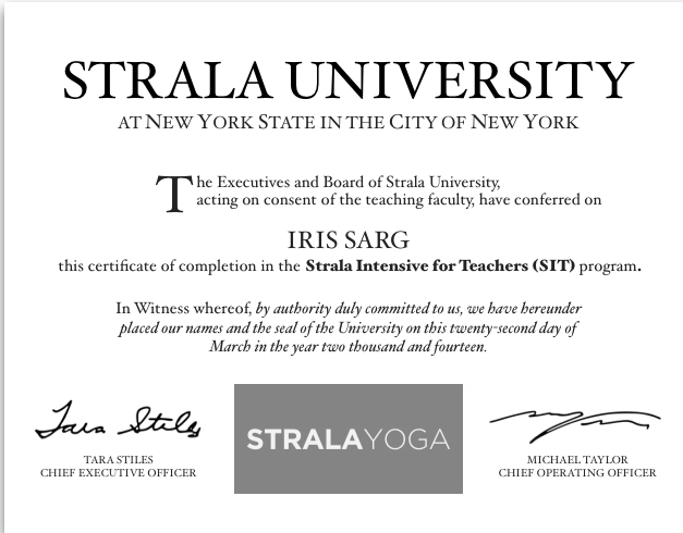 Formée et certifiée en Strala Yoga en 2014 par Tara Stiles.